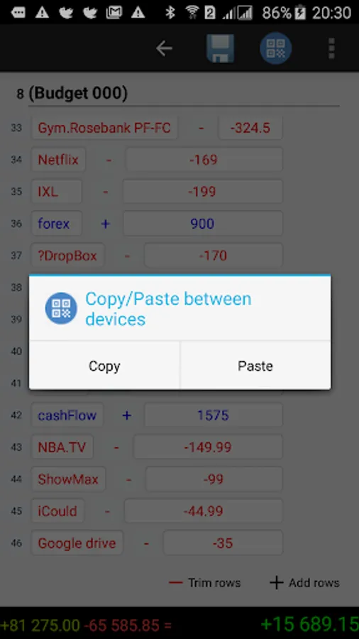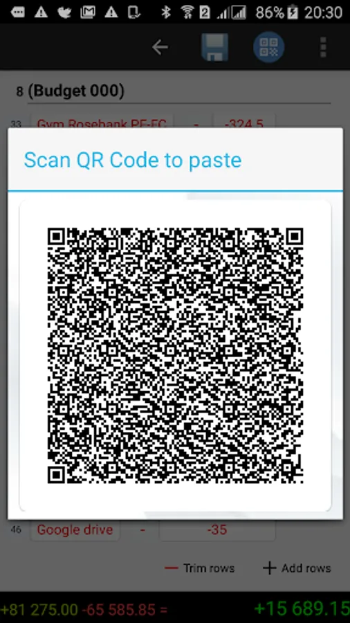 With version 3.0, we have added the capability to transfer budget sheet between devices using QR Code scanning.