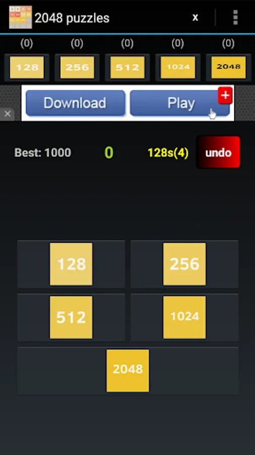You can play different math puzzle game: get any of those tiles 128, 256, 512, 1024 or 2048. for a quick fun. keep track of how many times you hit those tiles.