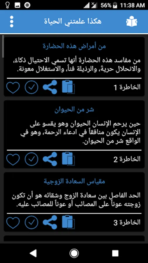 The application provides tips and life experiences through pauses with the book “This is how life taught me” by Dr. Mustafa Al-Sebaei, may God have mercy on him, and the book “Renew Your Life” by Sheikh Muhammad Al-Ghazali, may God have mercy on him.