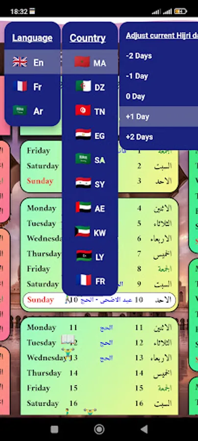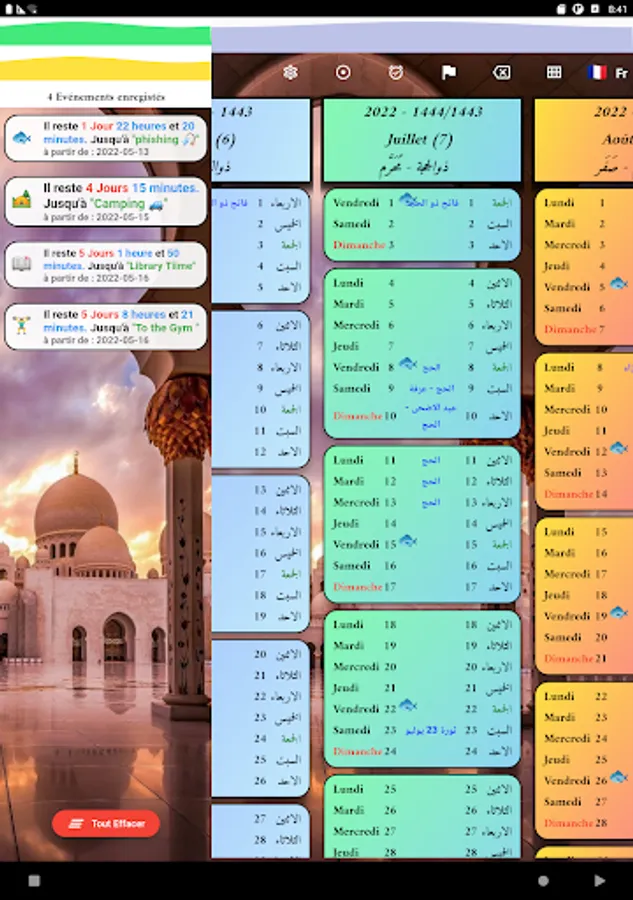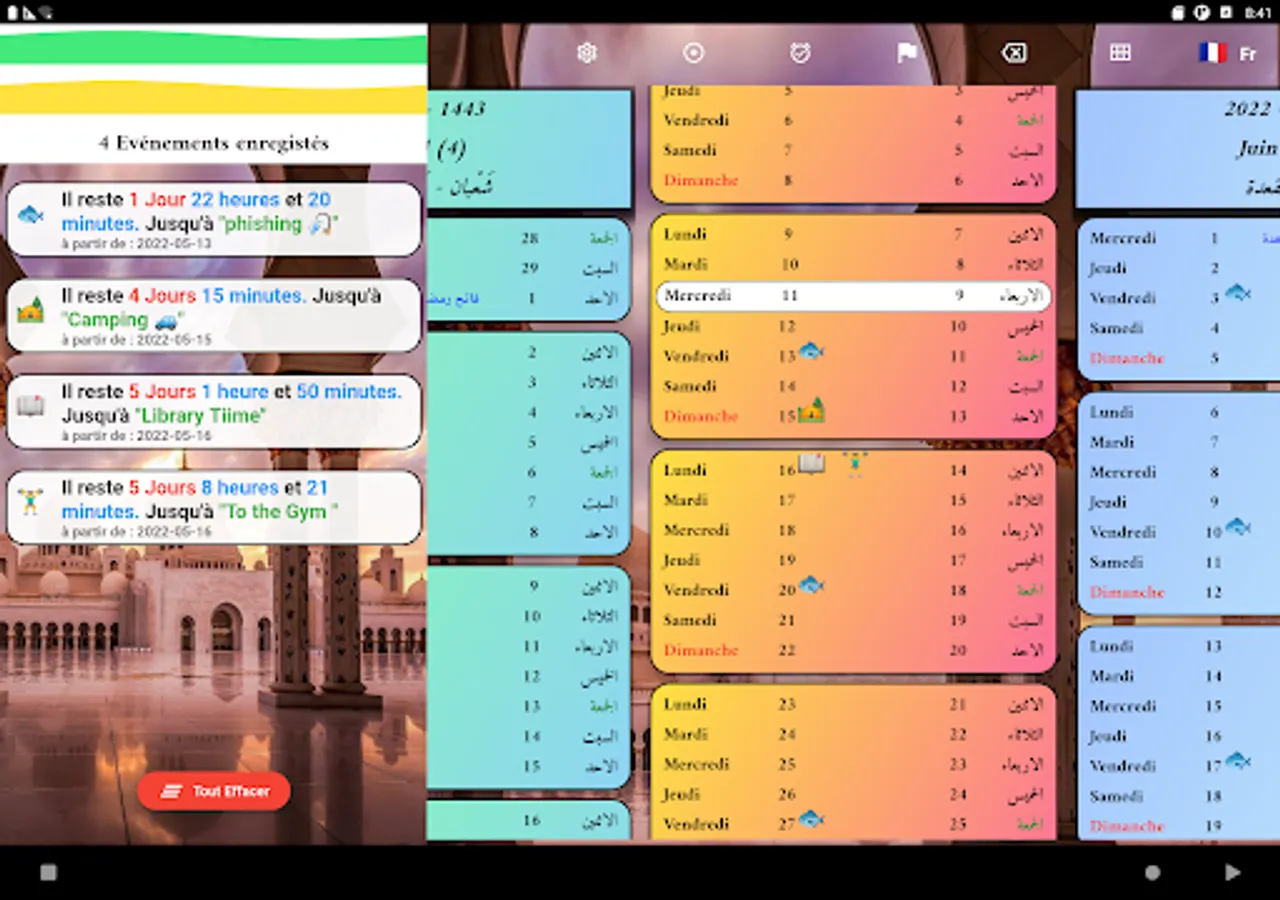 Yawmia. The daily Arabic Hijri and Gregorian calendar, which includes all religious and national holidays of 10 countries (Morocco, Algeria, Egypt, France…). It also allows you to note, follow up to the minute, and be notified of the dates of your most important events, appointments and moments. The calendar is customizable and the Hijri dates are adjustable by one or two days, depending on the country. It is available in 3 languages (Ar, Fr, En).