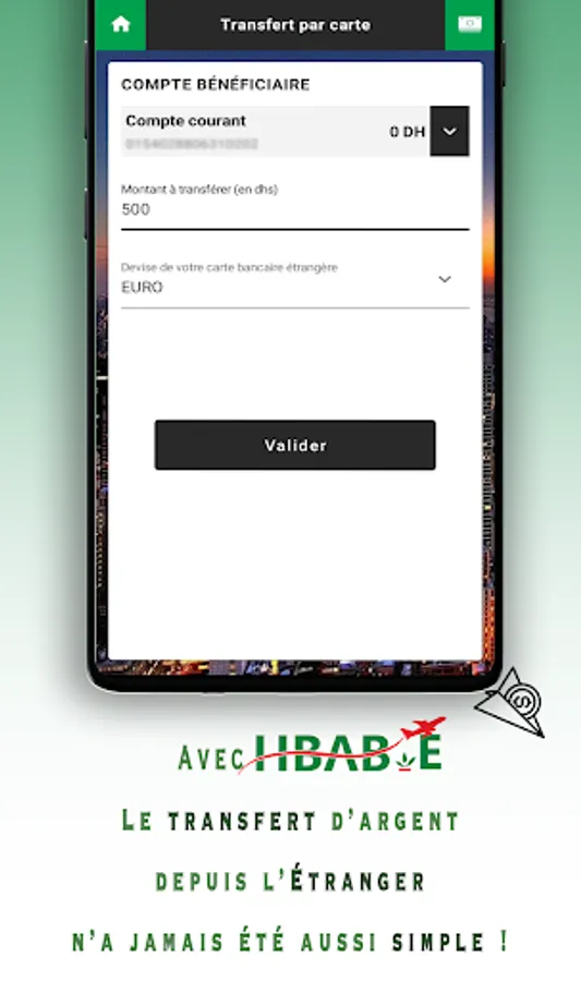 The “HBAB-E” application makes it possible to make money transfers from abroad by debiting a foreign card.