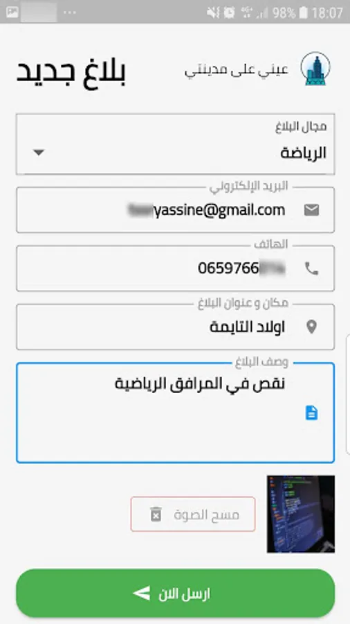 Eye on Madinaty application helps you send reports and complaints to the responsible authority in your city using the phone camera and take a picture of the report