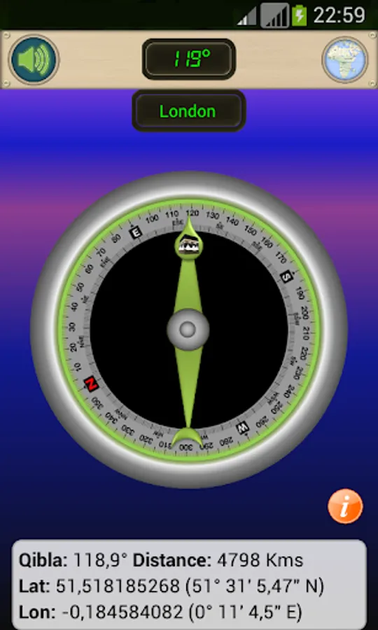 - it allows an exact calculation of the qibla direction with the ability to manually select your location.
