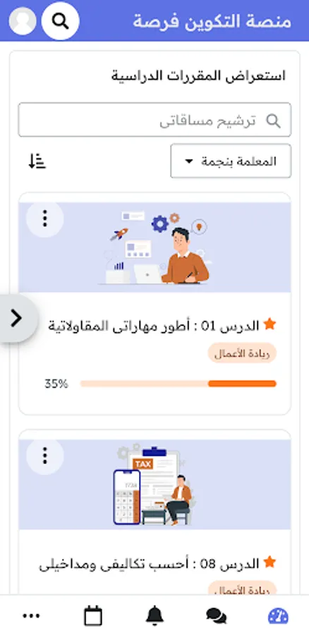 The Forsa Academy application is a companion application to the academy.forsa.ma platform, which relies on distance learning technology and enables project holders and contractors participating in the Forsa program to develop their entrepreneurial skills in an interesting and gradual way through a set of lessons and pedagogical activities designed with experts in the field of contracting and entrepreneurship.
