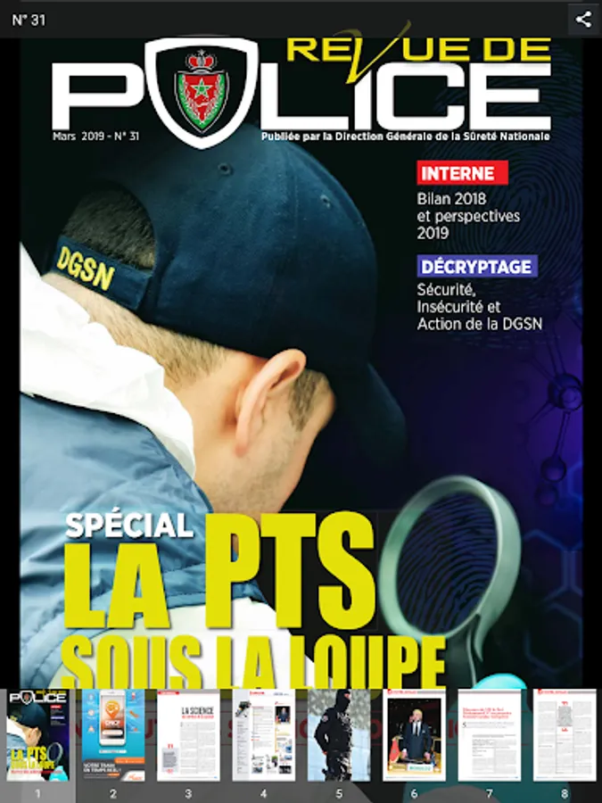 A new application called "Police Review" is now downloadable on your Android smartphone. This application embeds the electronic version of the Revue de Police which is a medium of information and institutional communication, published quarterly in Arabic and French by the General Directorate of National Security,