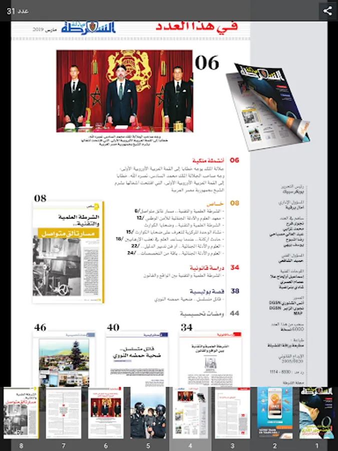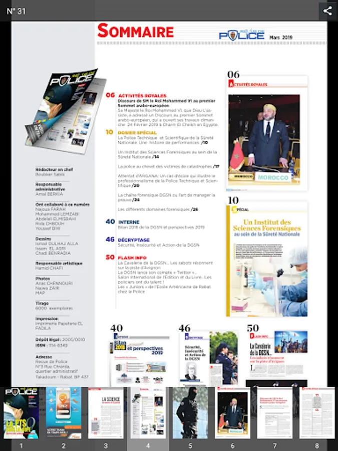 Varied and rich headings make up each issue, Royal activities, a special file decrypting a profession of the Police, events marking the news of the National Security, a subject of legal or scientific, a new black inspired business portraits and interviews.