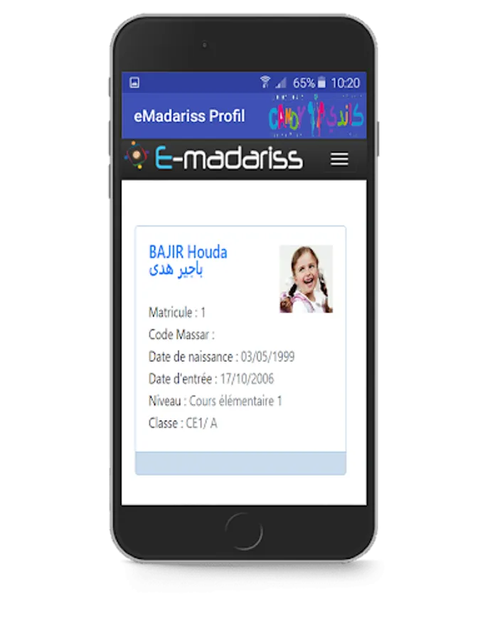 eMadariss Profile for GS Candy is above all the meeting and synergy of the 4 essential poles in education: students, teachers, parents, school life. It is also, thanks to the application of information technologies, a great meeting place between school and home. And it is also a set of tools and devices that are time-saving for teachers, heads of establishments, parents, children, and also for the General Secretariat of ECAM. Thanks to it, school and home come together and each becomes an essential complement to the other in strict compliance with its specificity and skills.