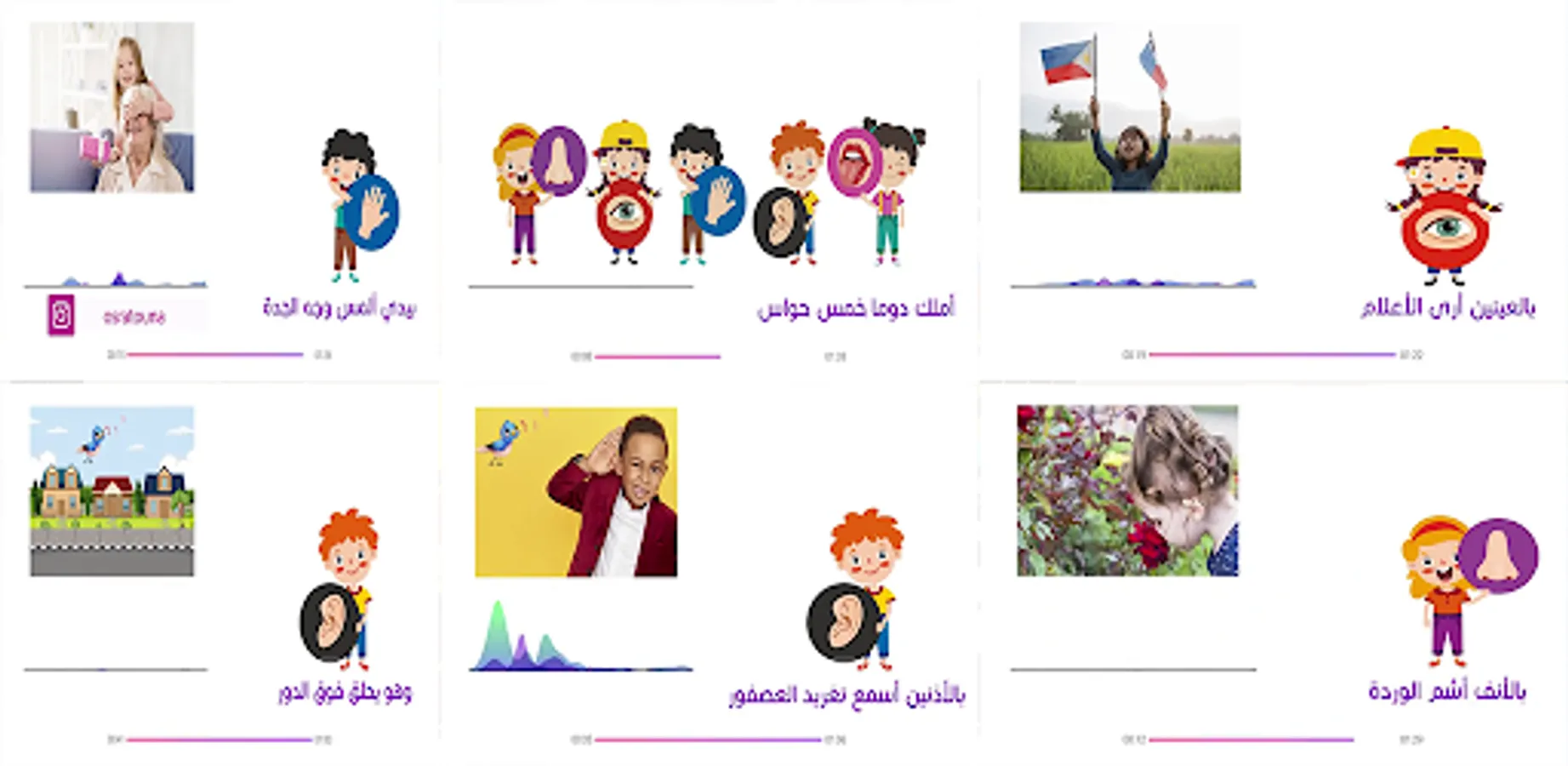 This application includes the five senses song I am a human in addition to the senses in French without the need for the Internet