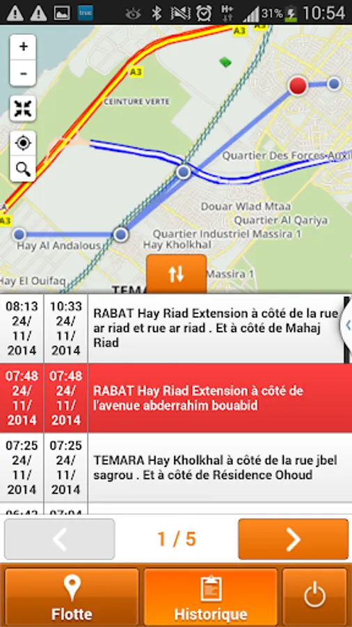 • Consult the detailed travel history (itinerary) of each of your vehicles.
