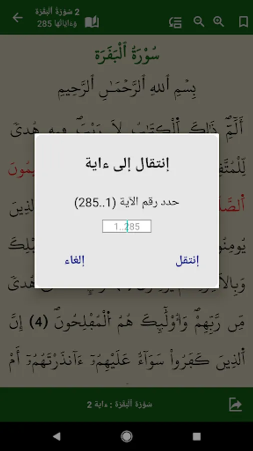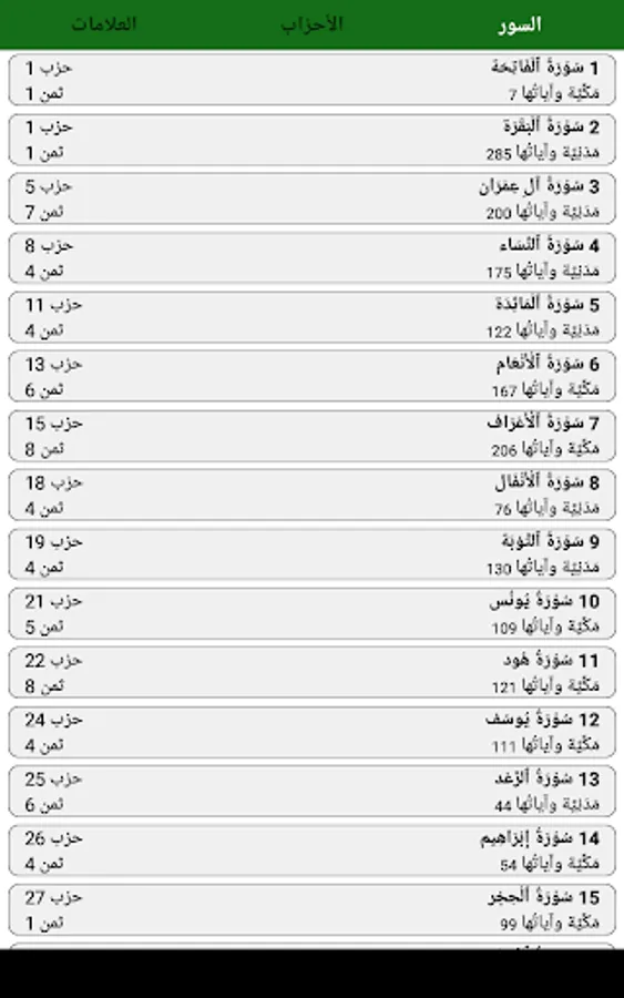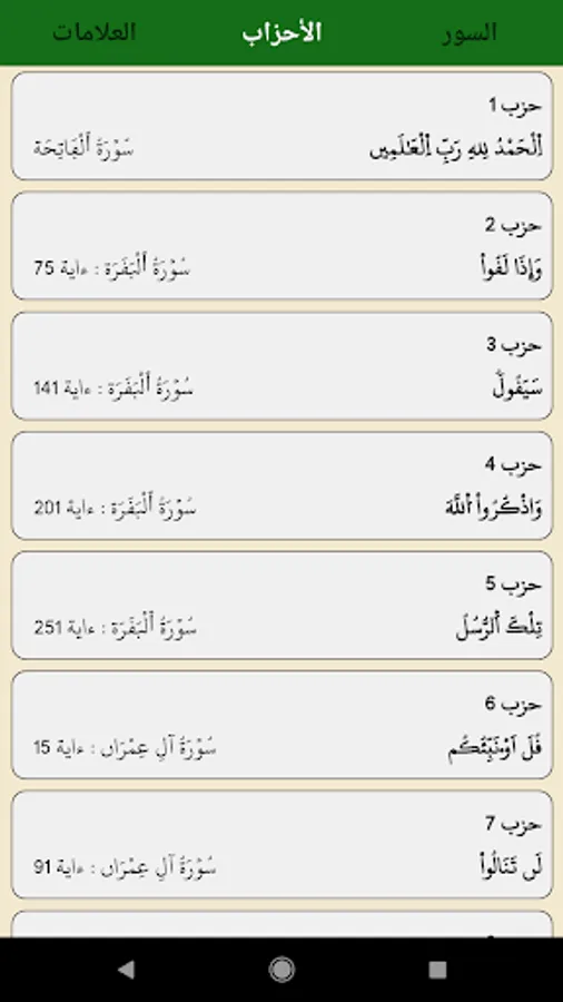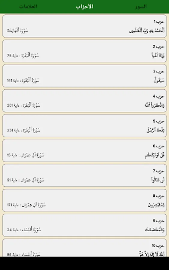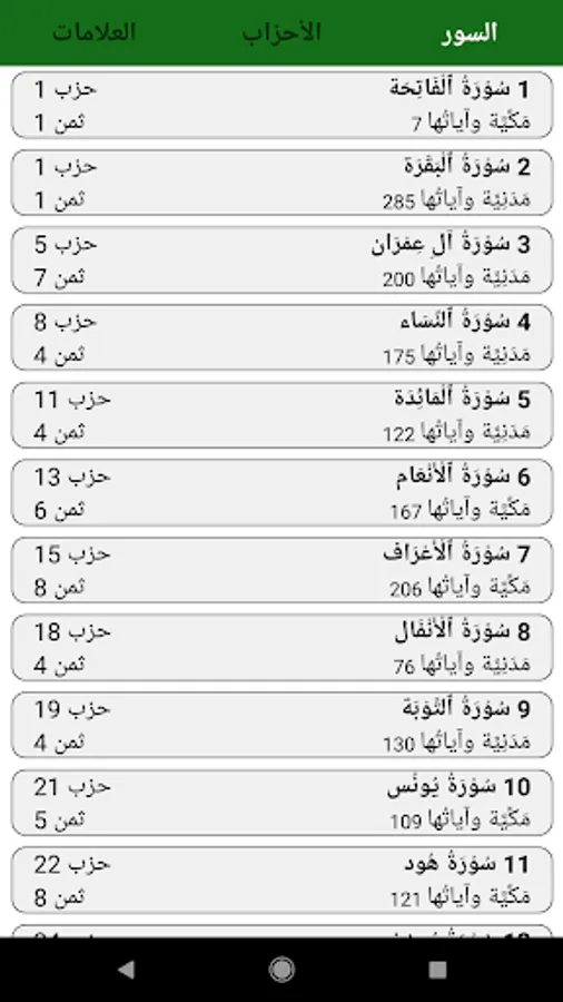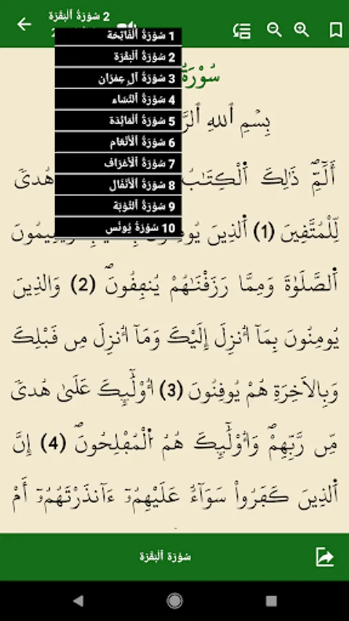Easy and fast browsing of the Holy Quran through surahs or parties