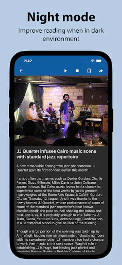 شغل الوضع الليلي لقراءة مريحة في الأماكن المظلمة.