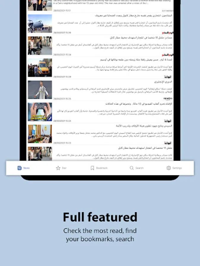 عندما يتم تحميل المقالات في التطبيق، يمكنك مطالعتها حتى بدون الأنترنت. أخبار تحفظ نصوص وصور المقالات تلقائيا.