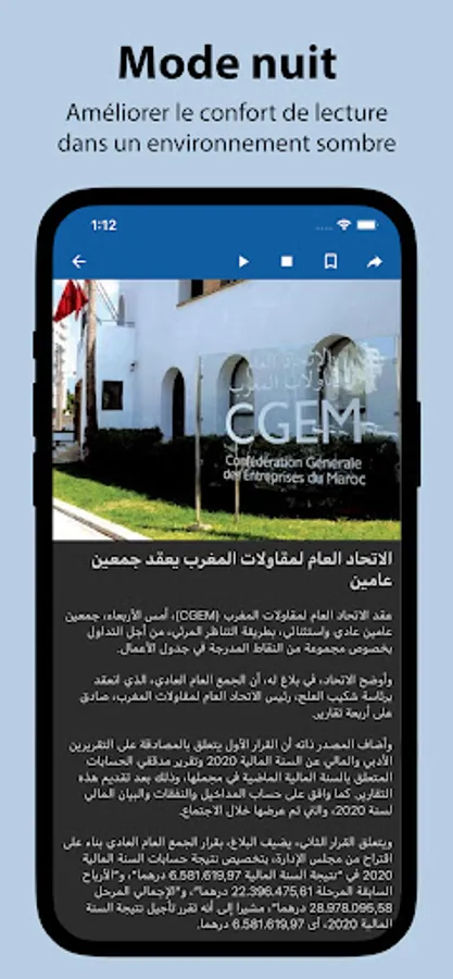 شغل الوضع الليلي لقراءة مريحة في الأماكن المظلمة.