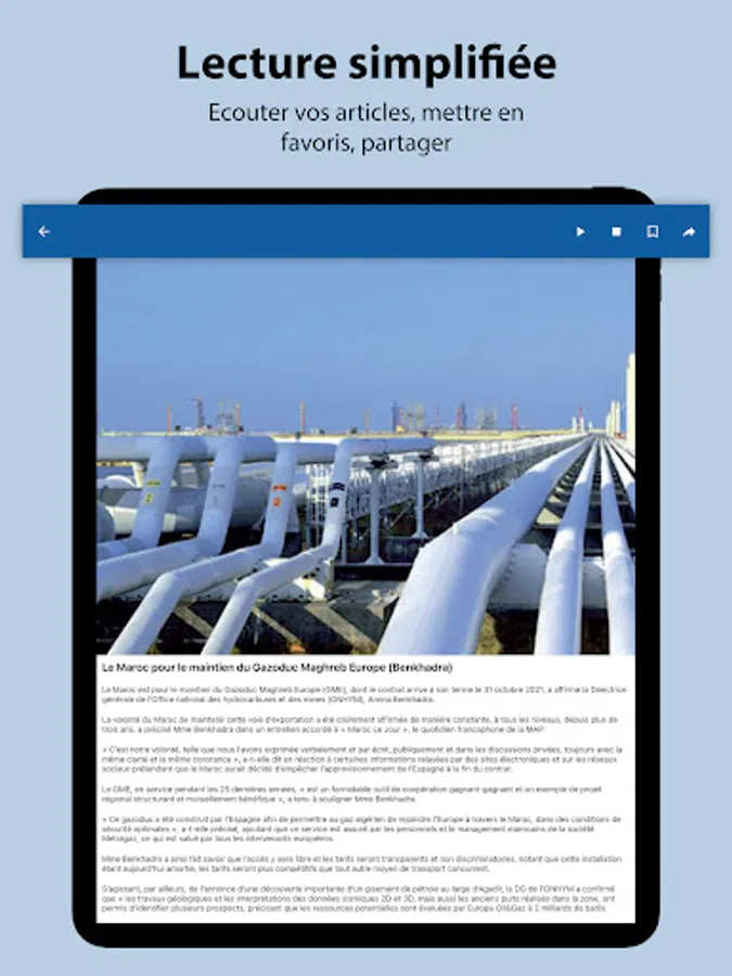 عندما يتم تحميل المقالات في التطبيق، يمكنك مطالعتها حتى بدون الأنترنت. أخبار تحفظ نصوص وصور المقالات تلقائيا.