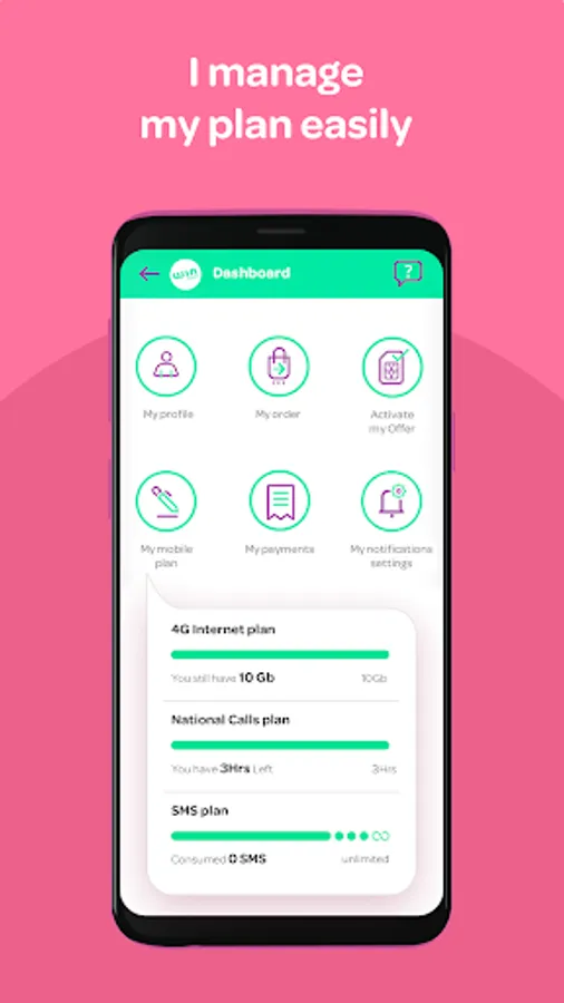 You customize your mobile plan by choosing the volume of internet and calls you want. You can stop & resume and modify your win plan whenever you want!