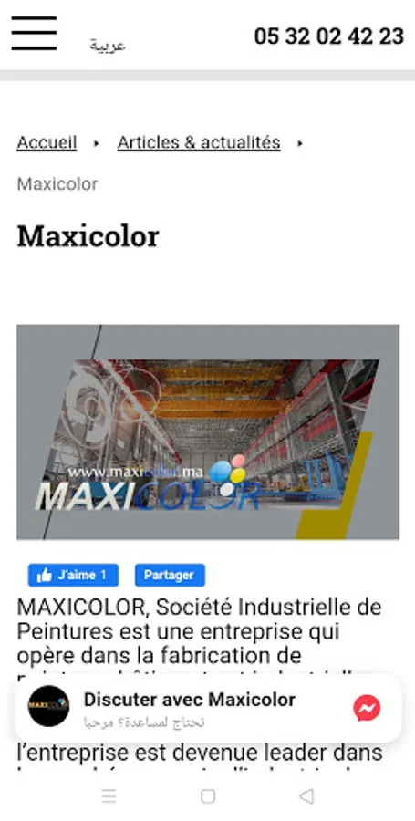 Today, the head office of the producer of MAXICOLOR paints is located in the heart of the industrial park of the city of Meknes, in a 42,000 square foot building housing its manufacturing plant and administrative offices. Maxicolor currently has several show rooms and its paints and coatings are distributed through a large network of retailers in Morocco.