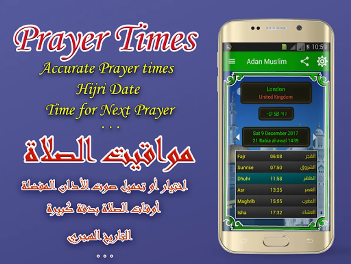 - Switch to automatic silence mode after the athan (this option is adjustable).