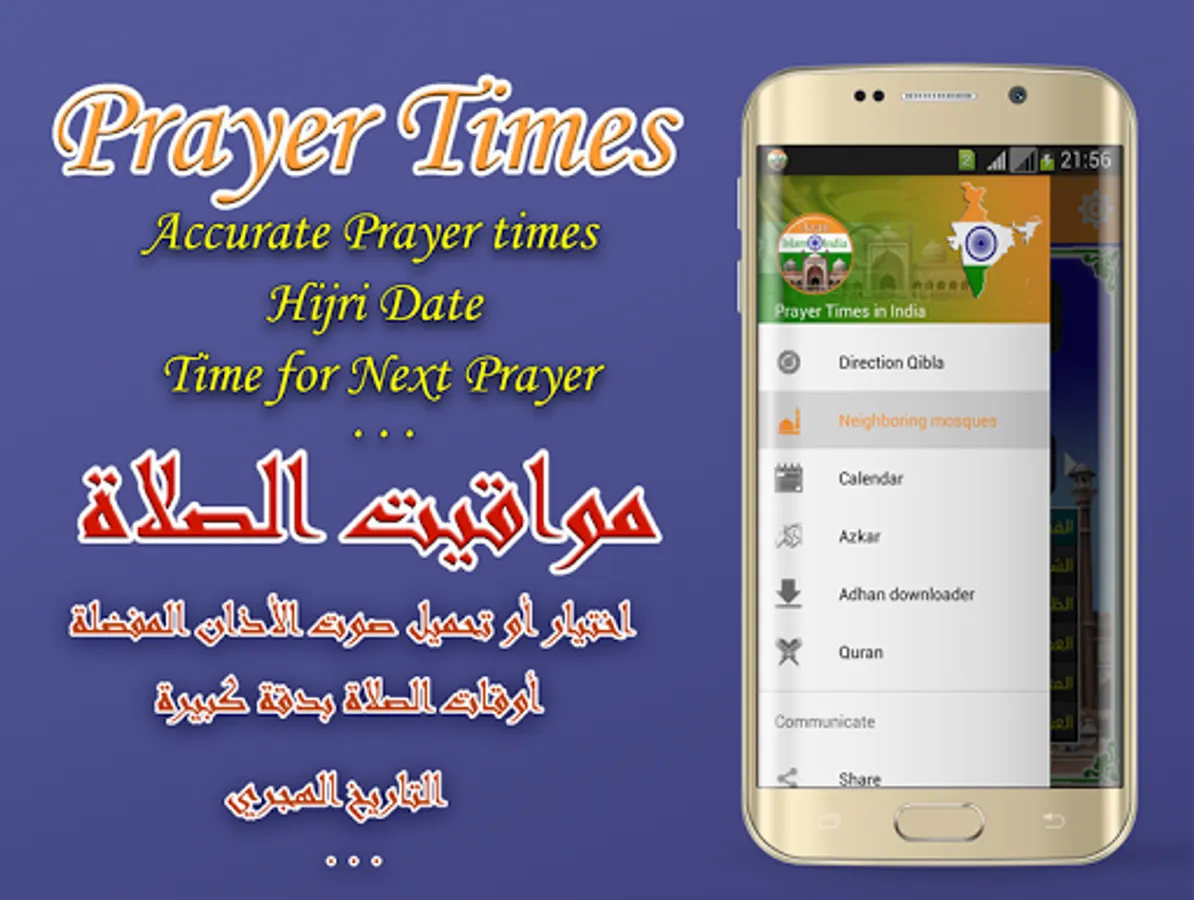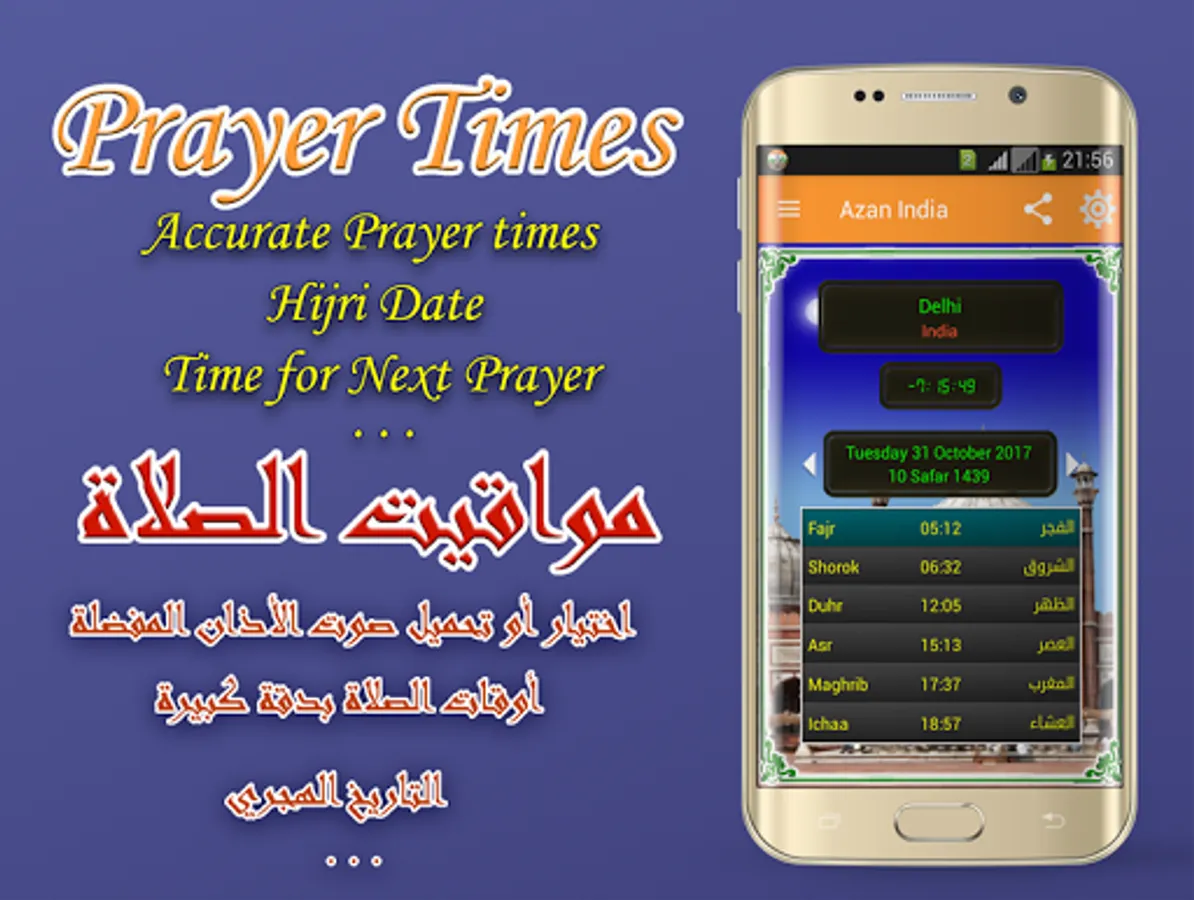 Adan India prayer times India is especially designed to indicate the accurate prayer for the majority of the cities of India like prayer time kerala or prayer time in delhi, this application can also: