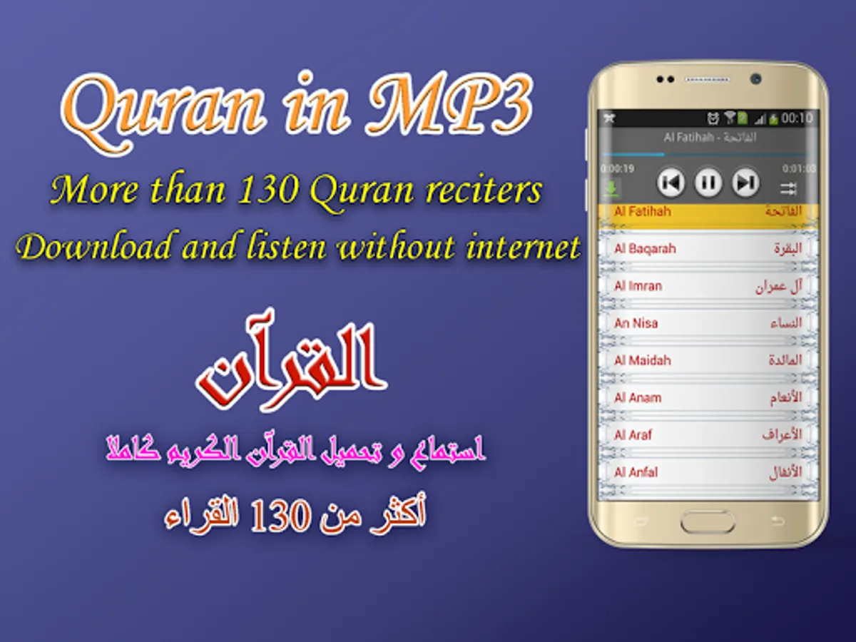 - Downloading mp3 Quran on your phone to listen without internet connection.