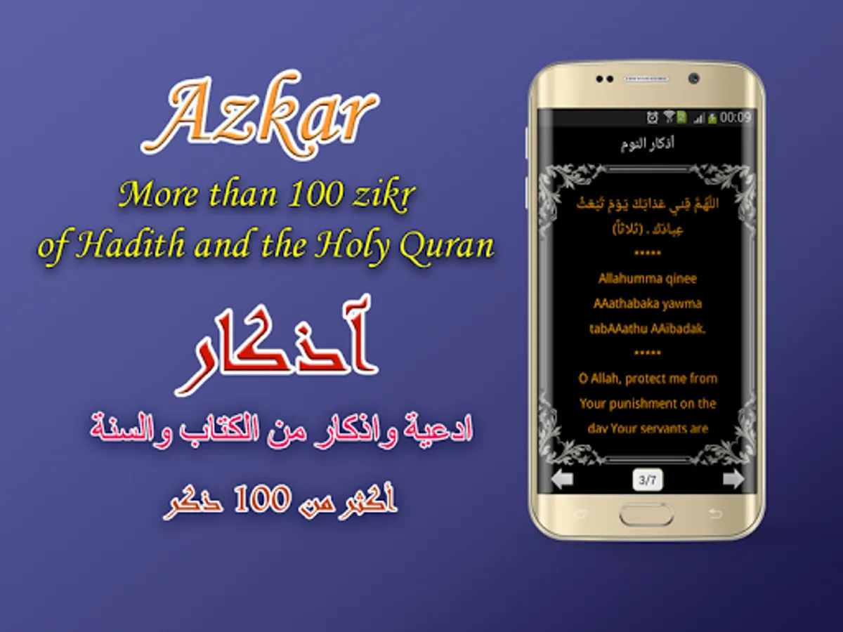- Automatic display of the Azkar (wake up, morning, evening and sleep Azkars).