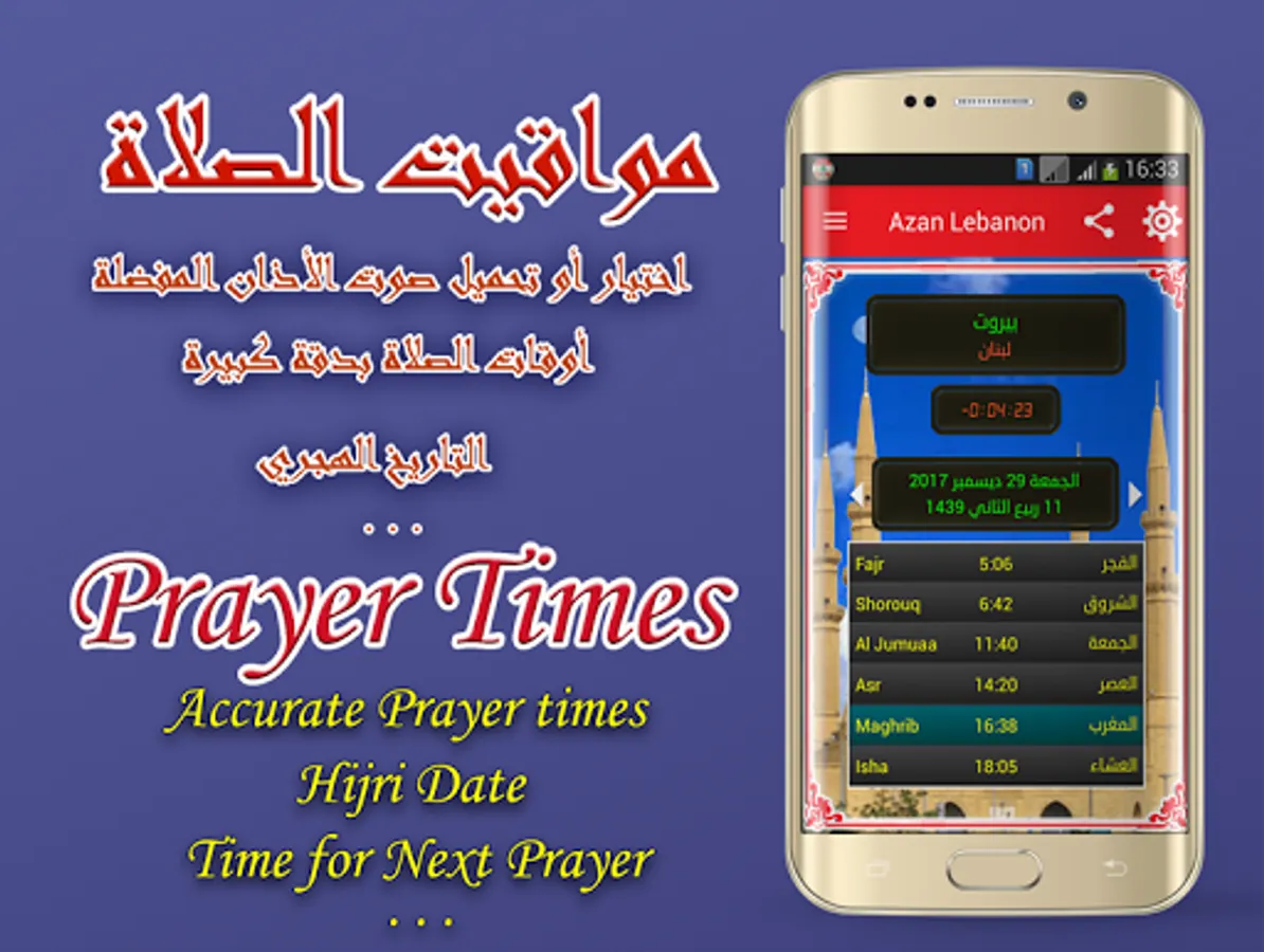 - Lebanon prayer time can select or download your favorite adan or Al-Moazin.