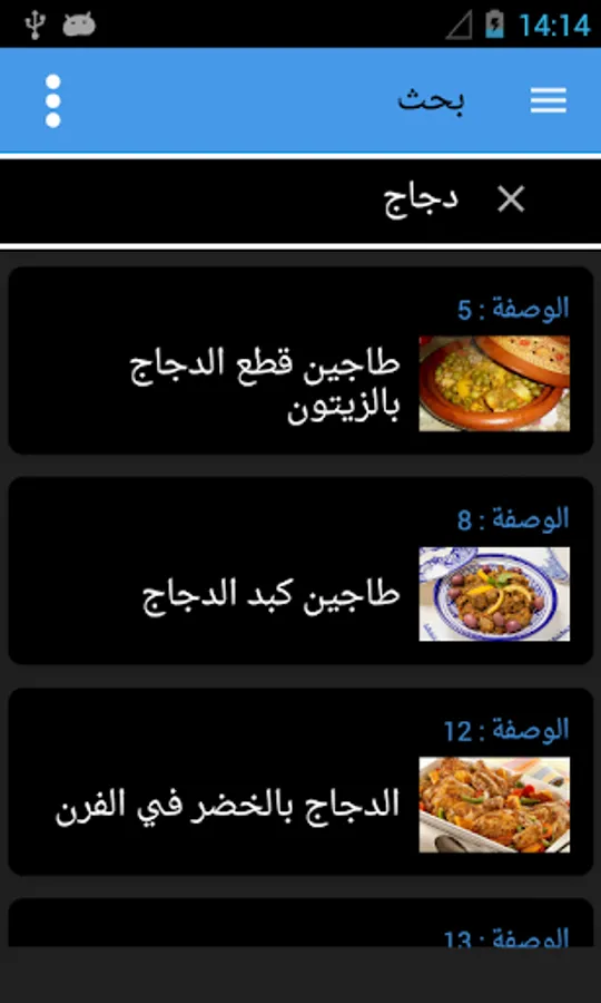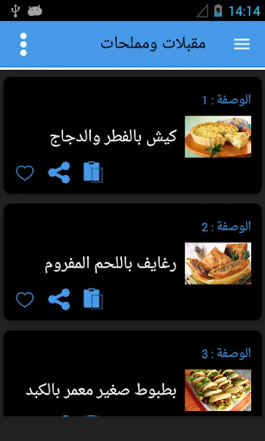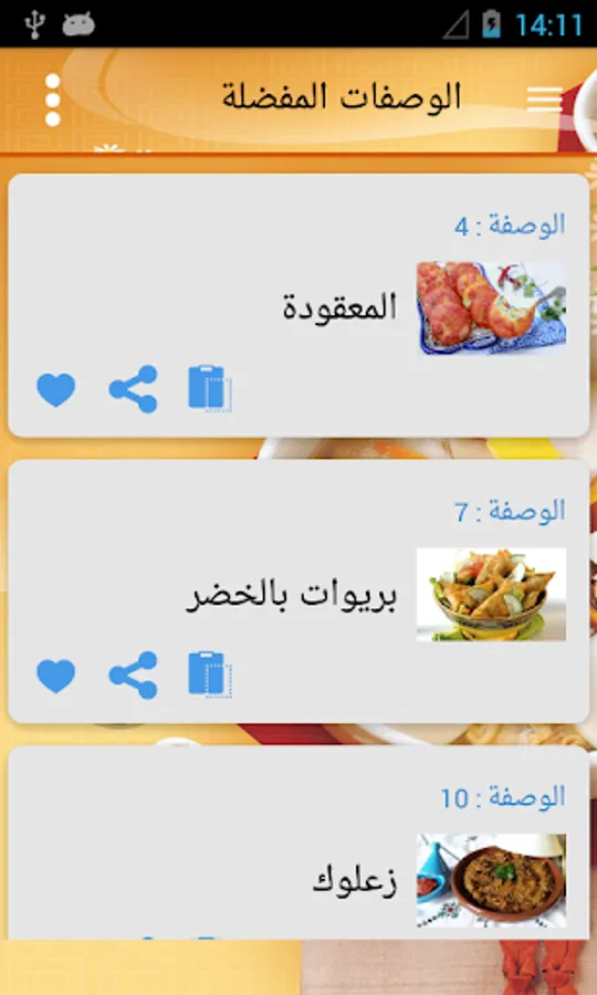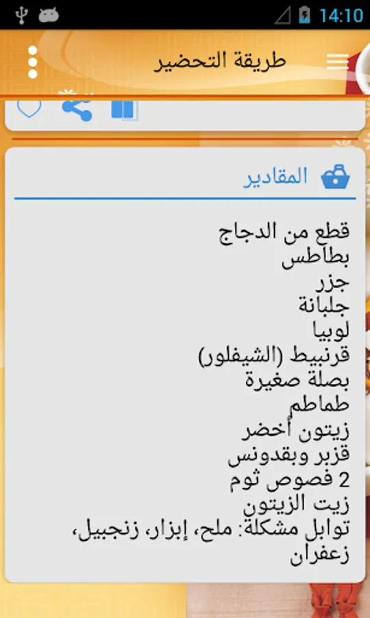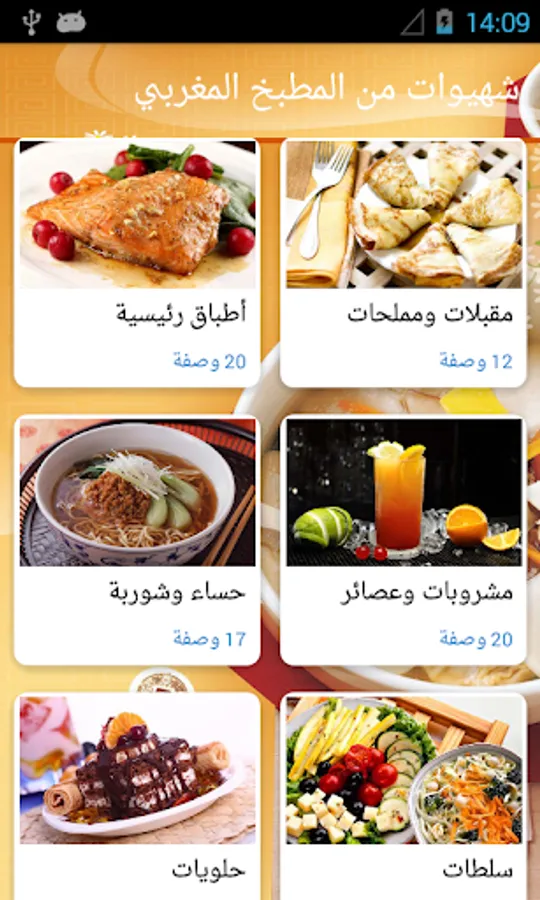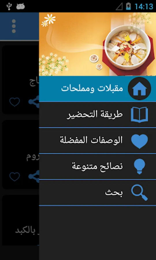 • Home: View recipes contained in the application is divided into six sections: main dishes, entrees Mmlhat, soup and soups, drinks and juices, desserts, salads.