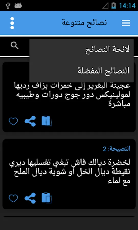 • Miscellaneous Tips: offer a range of tips and experiments for the cooking and cleaning, especially in general and household things, and also welcome your advice and your experiences to add them to the application in the next versions, God willing.
