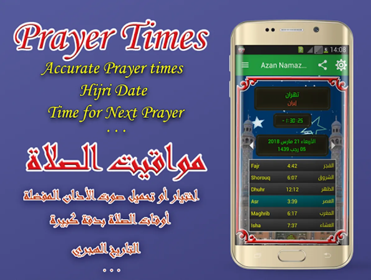 - View monthly prayer time with corresponding Hijri date is possible with Azan prayer times Iran.