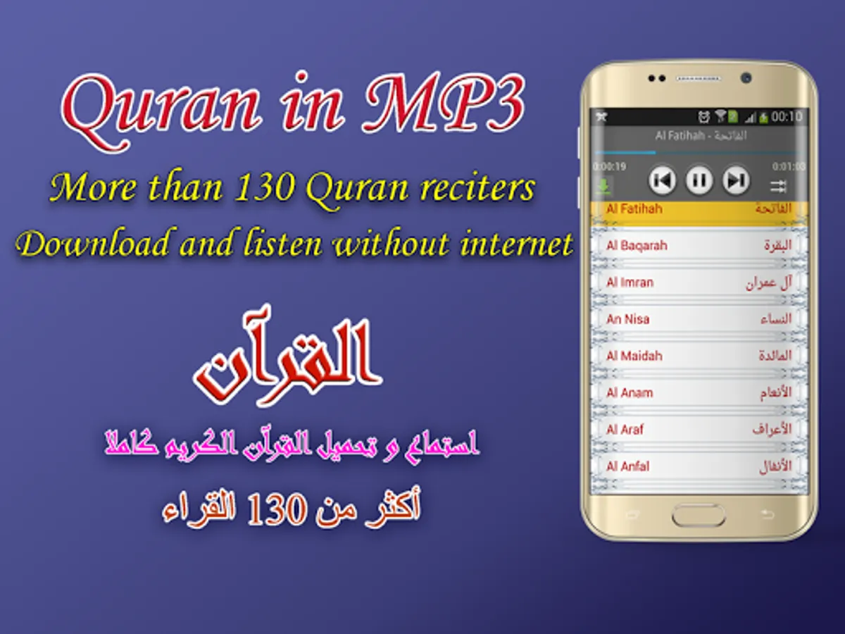 - Downloading mp3 Quran on your phone to listen without internet connection.