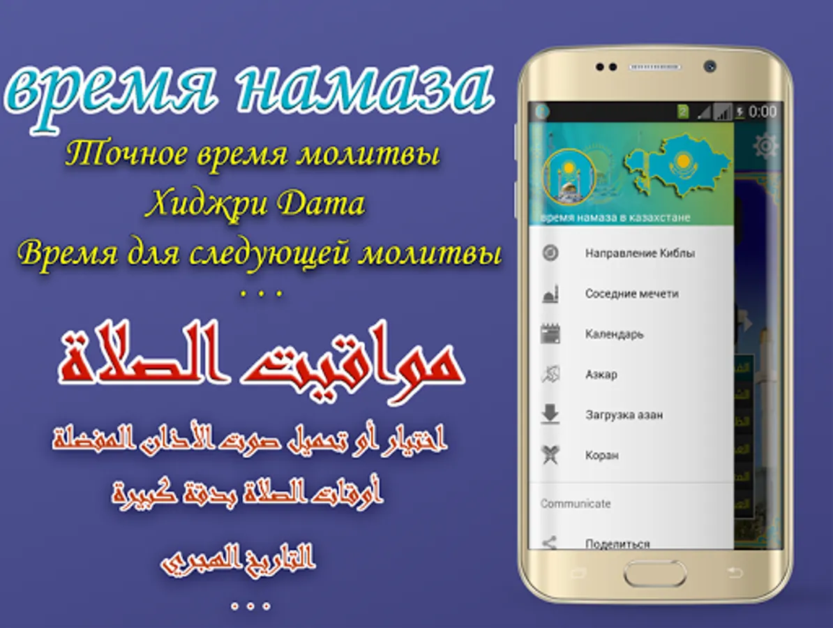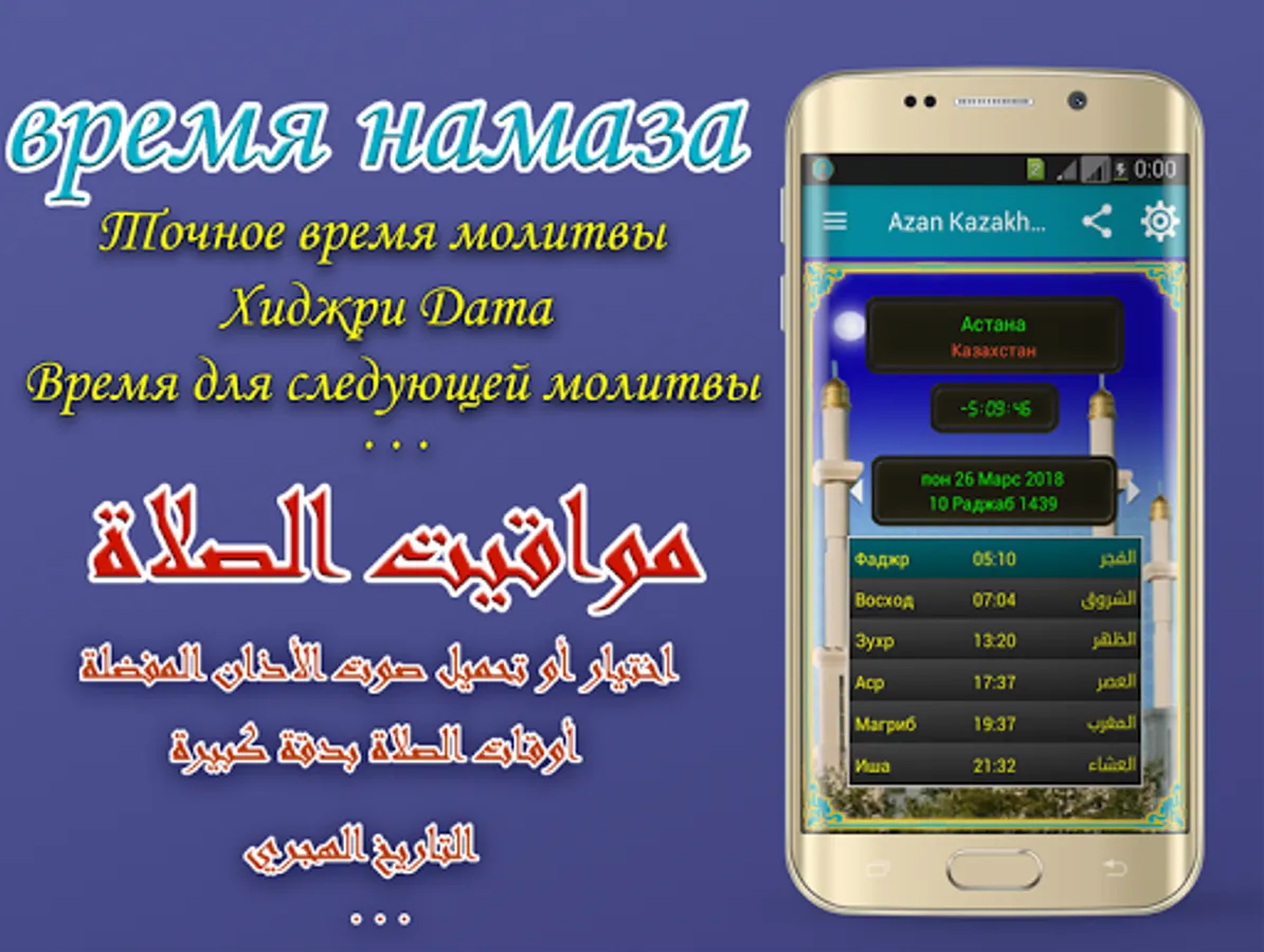 Azan Kazakhstan (время намаза в казахстане) is especially designed to indicate the accurate prayer times ( salat time ) for the majority of the cities of Kazakhstan like Almaty time prayer (алматы намаз уакыты) or time of prayer in Astana (намаз уакыты астана ), this application can also: