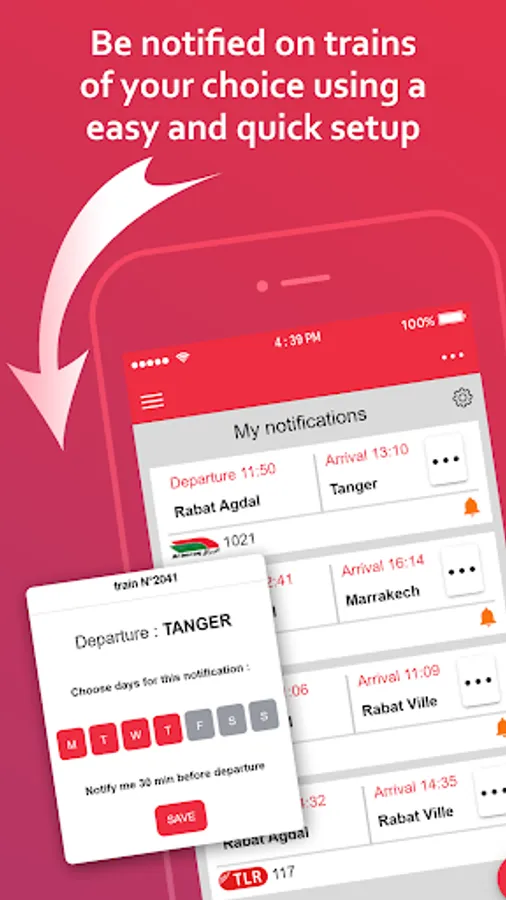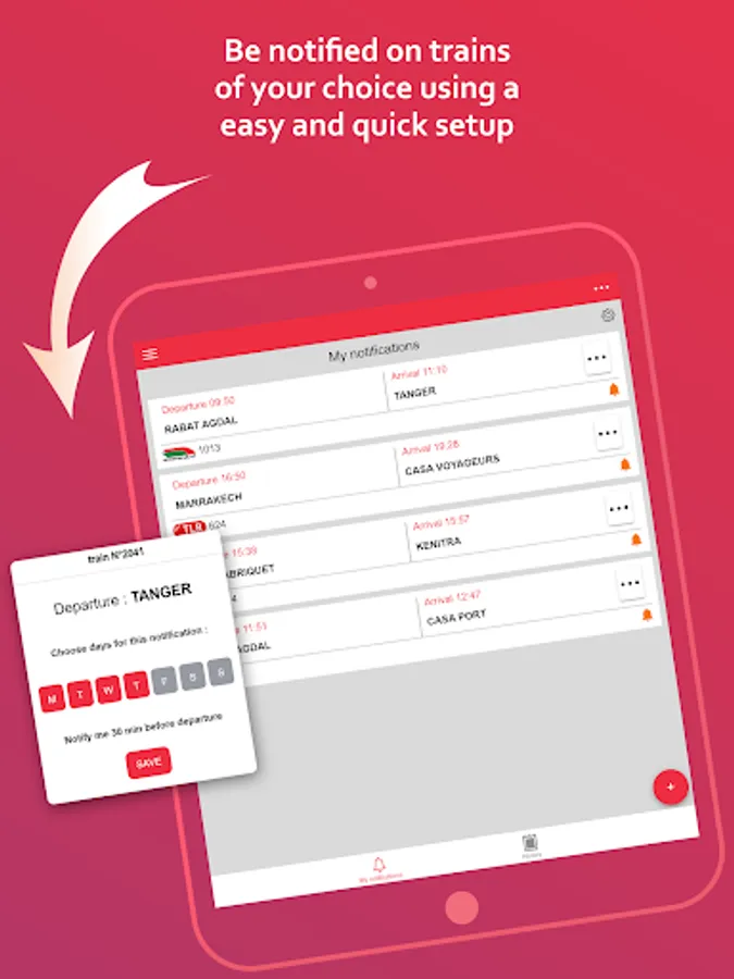 Thanks to ONCF TRAFIC, you can consult all the details of your journey: Stations served, Distance and journey time of your journey, Lane number, 1st class location.