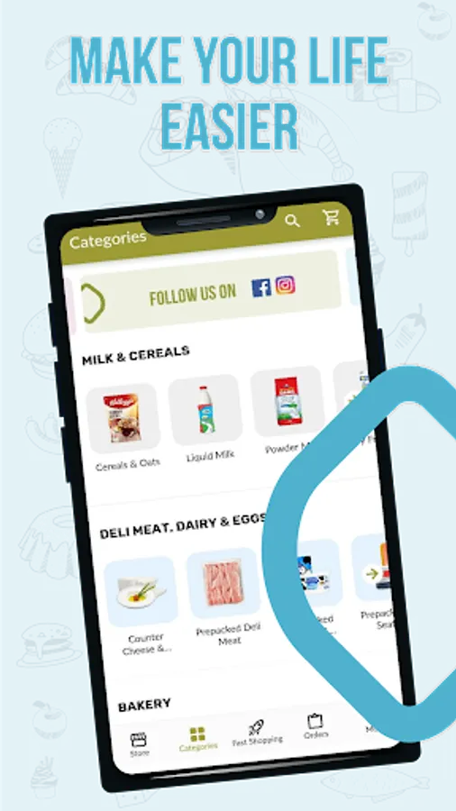With this friendly-use app, you can search from our categories divided into frozen products, bakery, beverages,