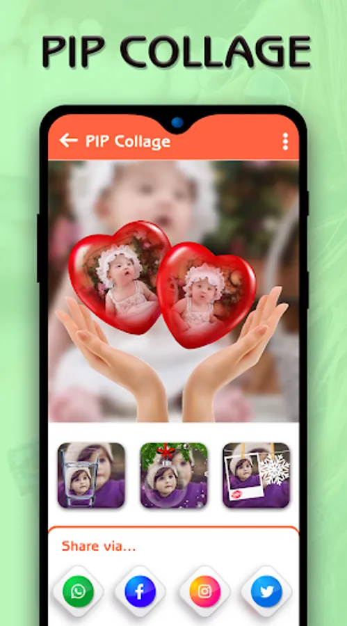 PIP Collage Maker has an amazing PIP collage style, amazing frame layout, and wonderful photo editor easily making your photo more stunning than other photo frames. Let's combine two photos in one with an awesome photo frame.