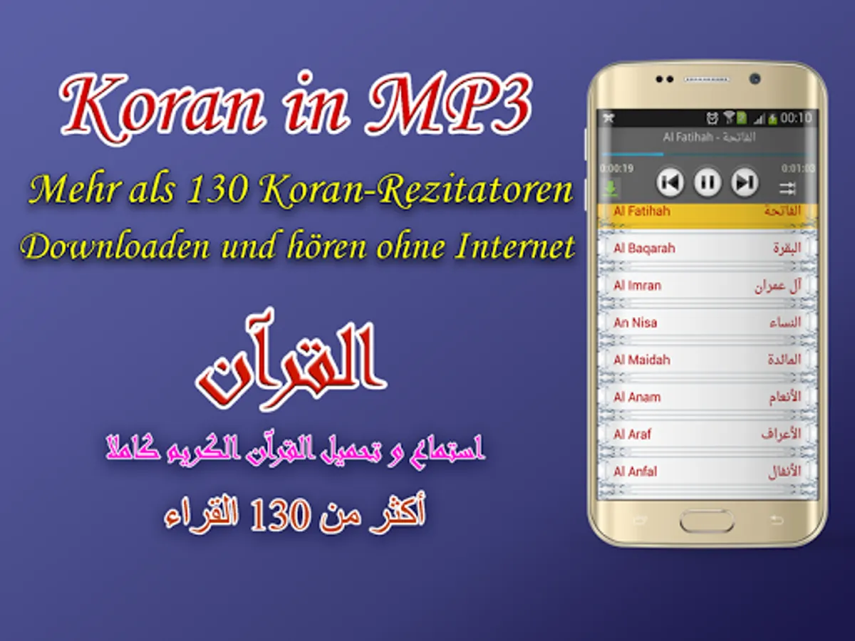 - Downloading mp3 Quran on your phone to listen without internet connection.