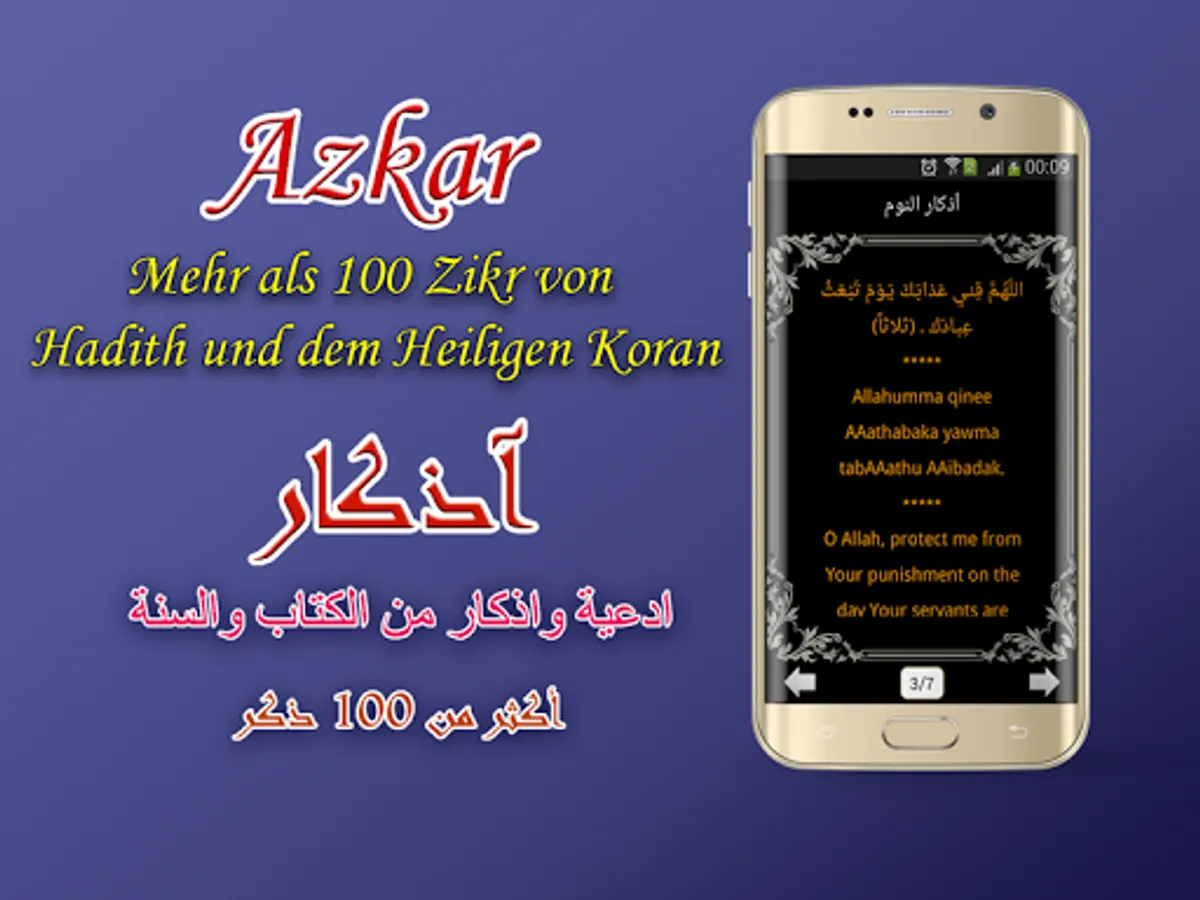 - Automatic display of the Azkar (wake up, morning, evening and sleep Azkars).
