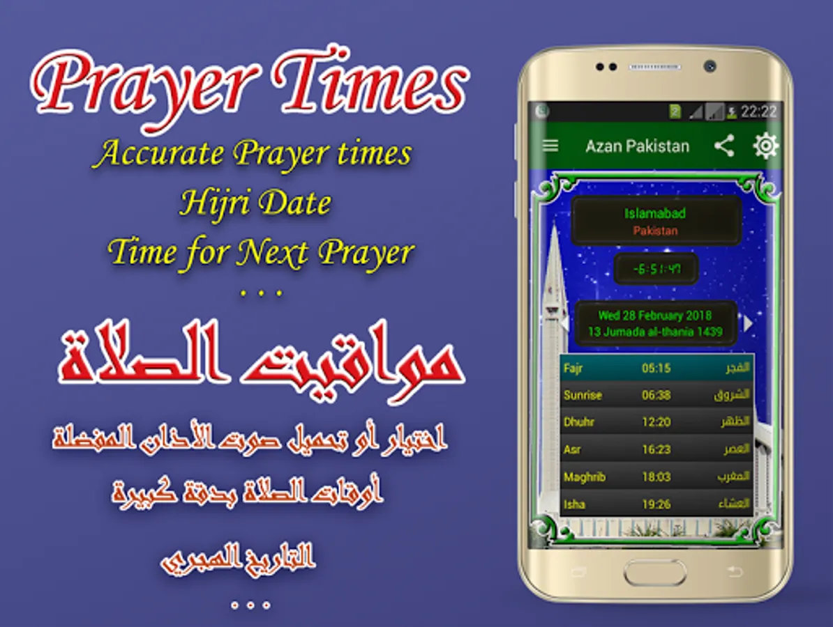 Azan Pakistan prayer time Pakistan (namaz timing pakistan) is especially designed to indicate the accurate prayer for the majority of the cities of Pakistan like karachi prayer time or prayer time lahore (namaz time in lahore), namaz timing in islamabad, this application can also: