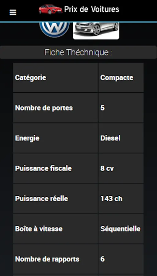 a data sheet for each release (Category, Doors, Energy, Fiscal power, real power, speed gearbox, number of reports, Maximum speed, city consumption, consumption on the road, Average consumption, CO2 emission, Cargo ).
