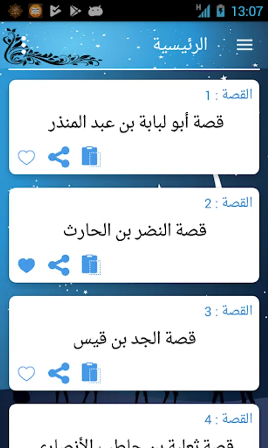 • Stories: View each story separately, you can navigate between the different stories by touching the screen from right to left or vice versa.
