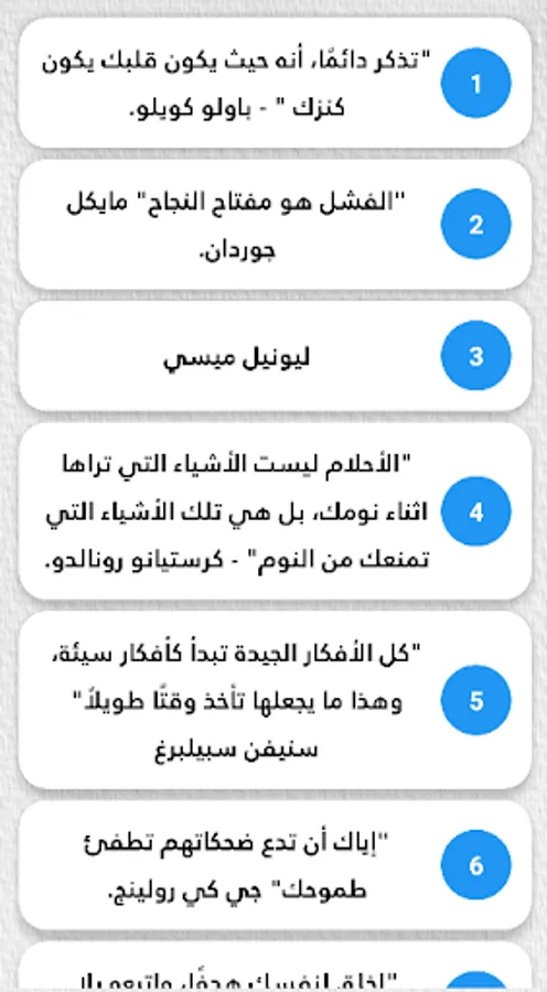 The application includes a collection of inspiring and successful stories of a number of famous personalities in the world and in various sports, artistic and political fields.