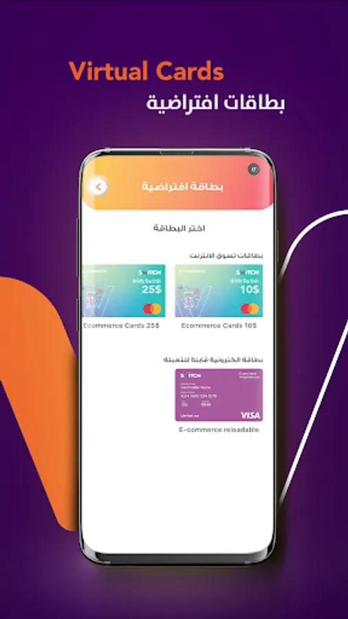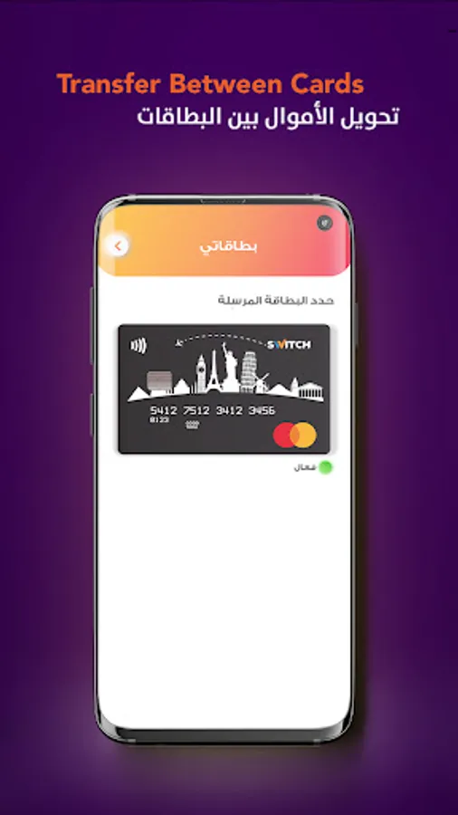 "Your one stop shop to a digitized cashless experience, with Switch app you can pay online, transfer money around the world, pay your bills, manage your expenses and create a virtual card with world class security"