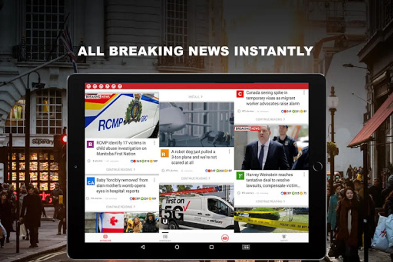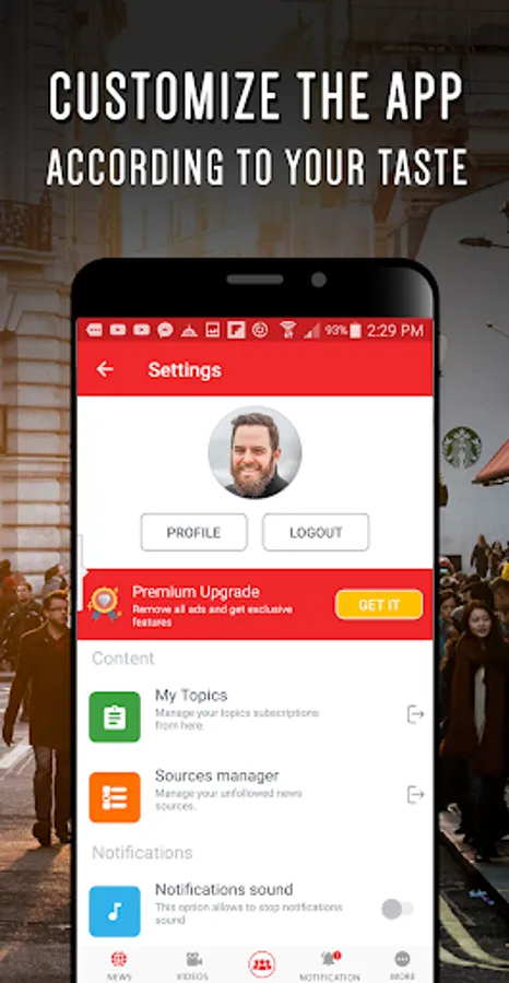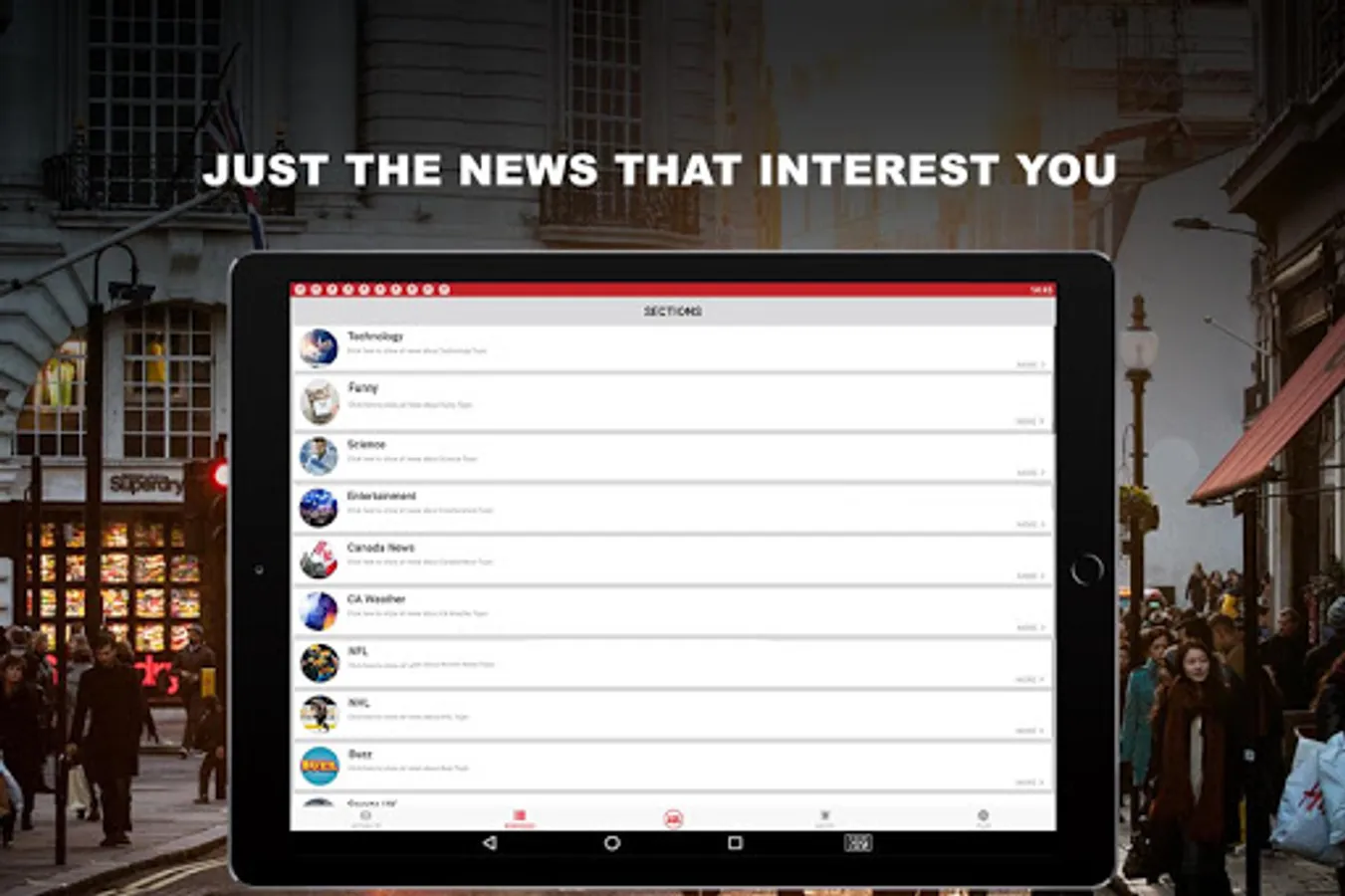 More than news, the app offer topics about : world news, weather, business, football, sport, showbiz, science and health stories.