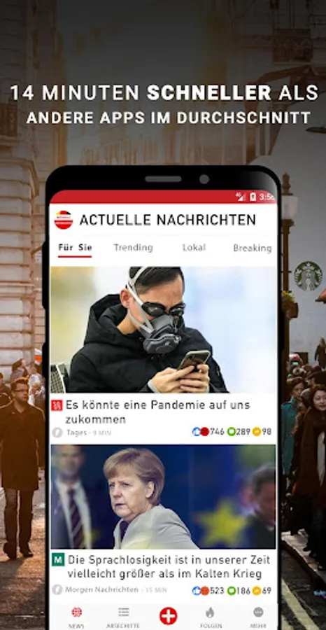 The fastest news app for Germany to get all local news and world news.