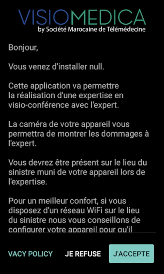 Visiomedica Maroc is the companion application of the telemedicine platform deployed by the Moroccan Society of Telemedicine (SMT). It transforms any smartphone and / or tablet into a field tool for medical teleconsultation, carried out from an approved computer station.