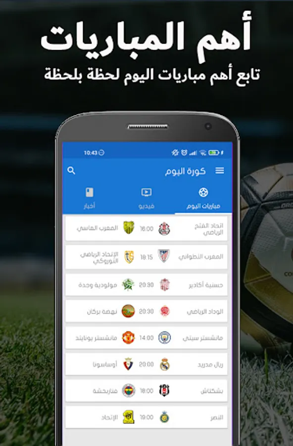 Today's matches application is live, an application that provides you with the schedule of today's matches directly on your mobile phone, and direct coverage of the lengths of all matches.
