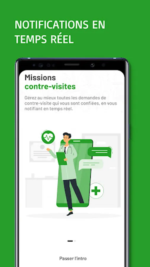 - Be notified in real time of the various tasks entrusted to you (requests for medical advice or counter-visit missions)