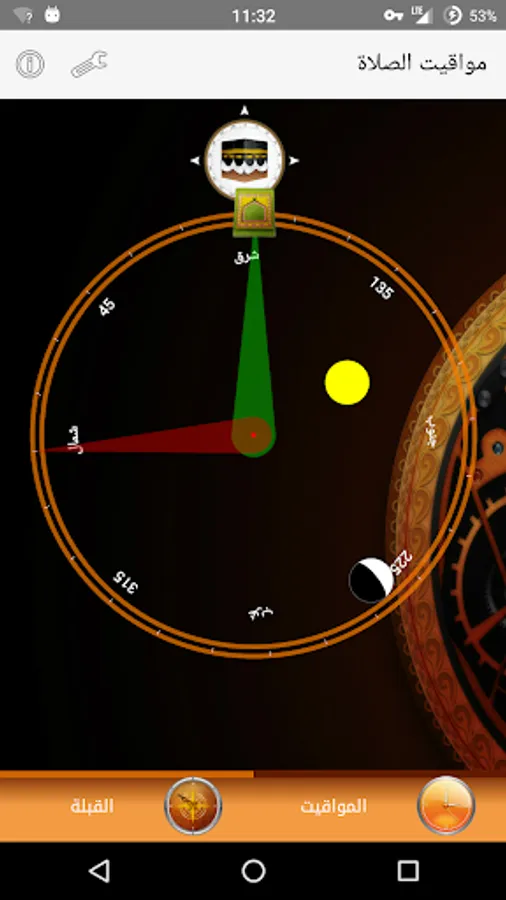 - Boussole dynamique pour détecter la direction de la Qibla et le Nord en plus des positions du soleil et la lune.