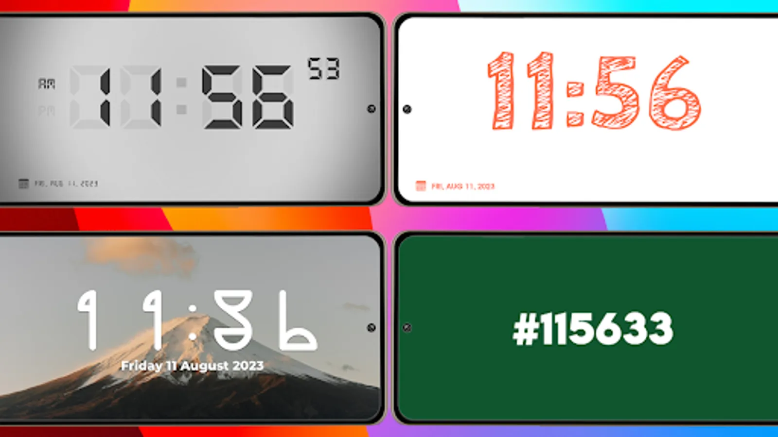 Digital clock: You can personalize it by changing the clock, background, and date colors, as well as selecting any desired font.