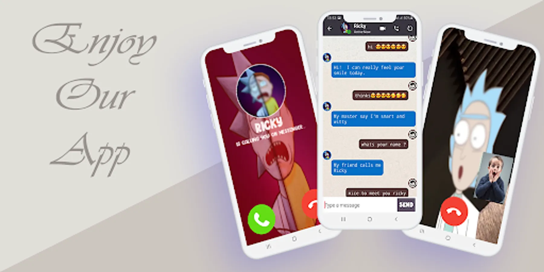 If you want to prank your friend and family, your in the right place, thanks to this fake caller app you can make anyone believe that their favorite rick character is calling them, this prank dial app allows you to Enjoy unlimited number of calls and video calls, and chats in which you can have a long time funny conversation and chat simulation with morty.