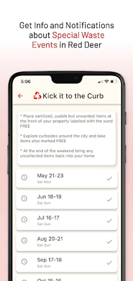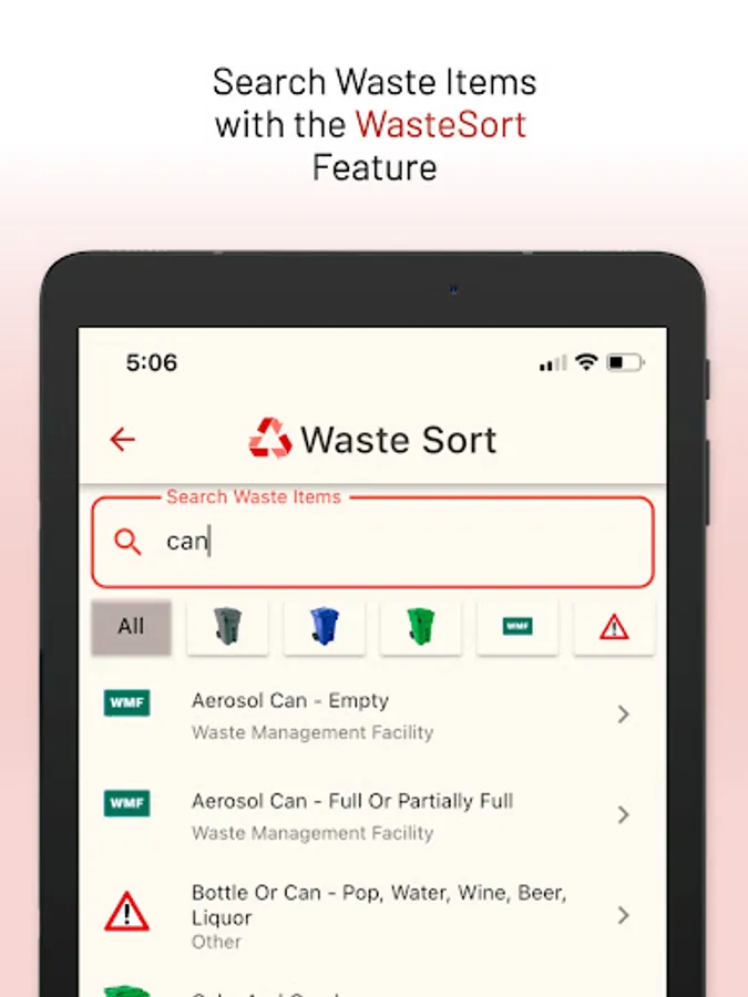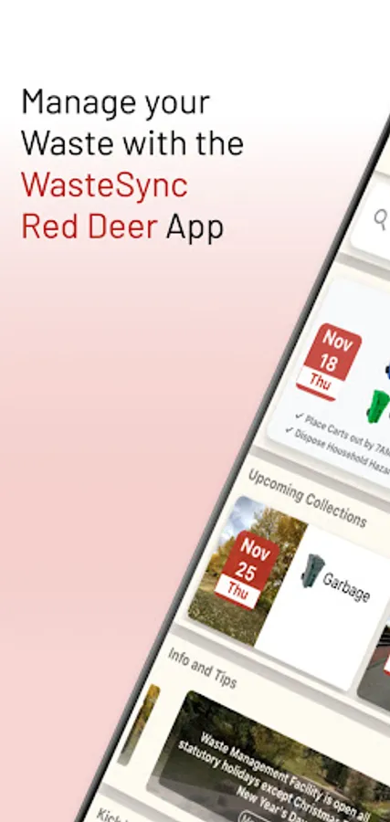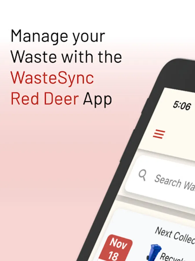 WasteSync Red Deer lets you organize your waste disposal by providing a Waste Collection Schedule, Waste Sorting tool and Waste Collection notifications.