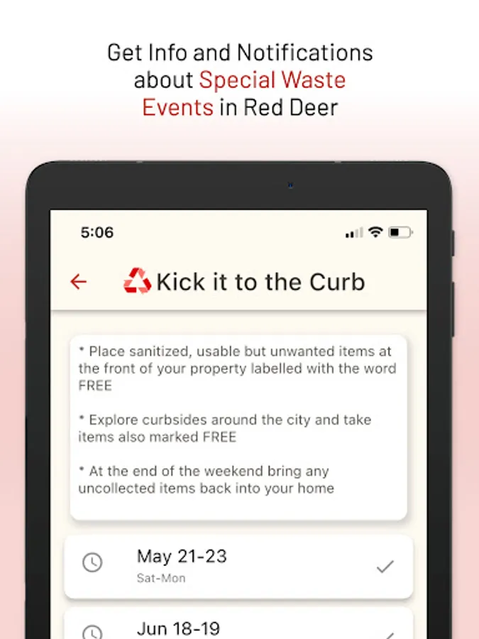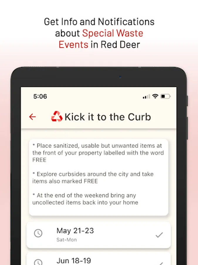 You can also access the app via the web on any device: https://reddeer.wastesync.ca/